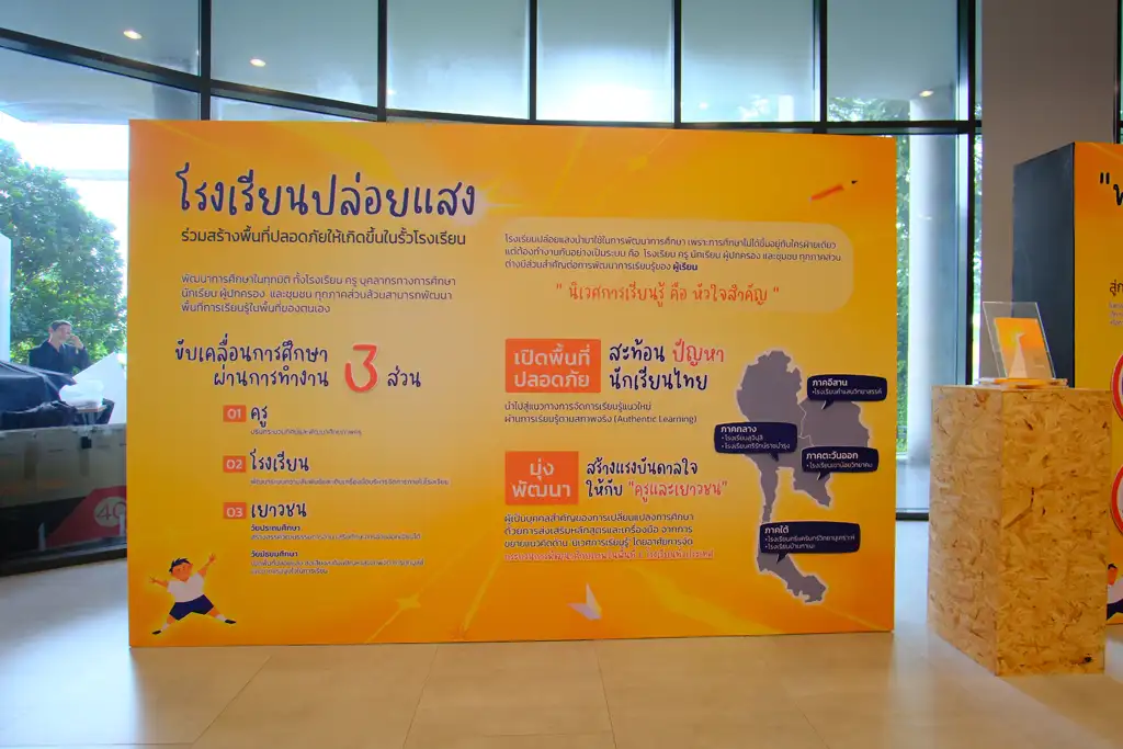 The Schoolbased Young Creative Designer Exhibition was organized to showcase the achievements of the Safezone Schoolbased Project over three years. The event also featured the Young Creative Designer Forum, providing students with a platform to reflect on challenges in Thai education, share learning experiences, and present their own visions of student-designed classrooms. The initiative was held in collaboration with the Faculty of Learning Sciences and Education at Thammasat University, the Korkankru Team, the Safezone Schoolbased Team, and educational networks.