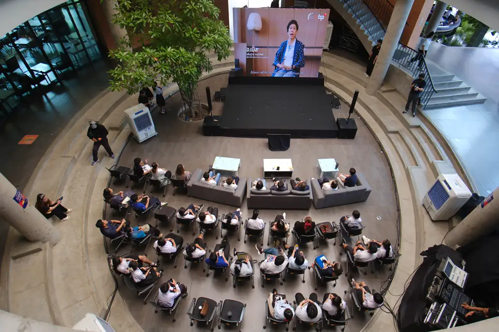 Laew Tae was entrusted with full event management, including infographic design and production, exhibition booth setup, stage design, lighting and sound systems, program sequencing, scriptwriting, MC coordination, and on-site supervision.