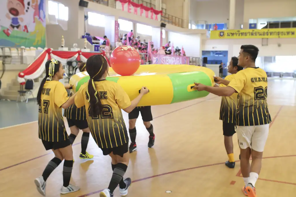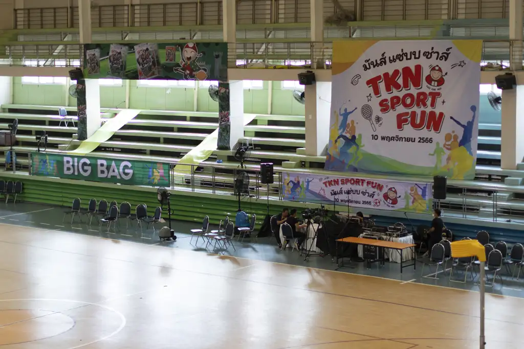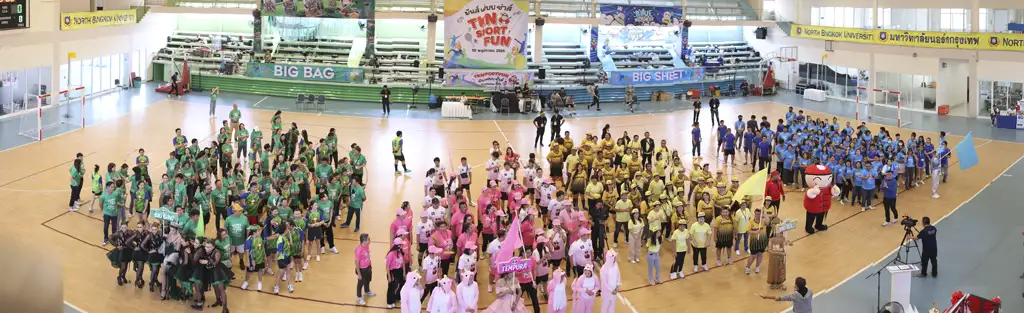 The TKN Sport Fun Event took place on November 10, 2023, at the Indoor Gym of North Bangkok University, Saphanmai, with over 450 employees from Rojana, Muangthong, and Noppawong participating. The event fostered unity, fun, and wellness through activities such as futsal, chairball, badminton, e-sports (ROV), fun games, and cheerleading contests.